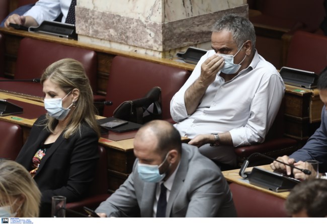 Mε υποχρεωτική τη μάσκα για όλα τα μέλη του Κοινοβουλίου διεξάγεται η συνεδρίαση της Ολομέλειας της Βουλής, μετά και τη σχετική οδηγία της Υγειονομικής Μονάδας της Βουλής στο πλαίσιο των μέτρων προστασίας από τον κορονοϊό.