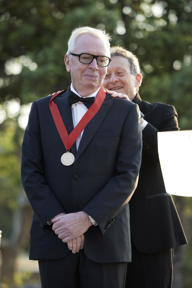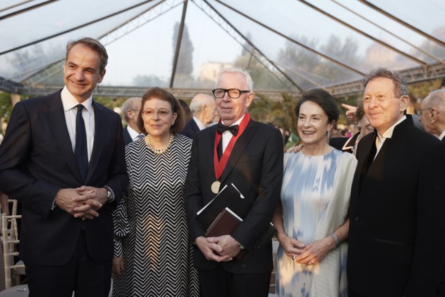 Ο Κυριάκος Μητσοτάκης και η σύζυγός του Μαρέβα Γκραμπόφσκι - Μητσοτάκη παρέστησαν απόψε στην τελετή απονομής του διεθνούς βραβείου αρχιτεκτονικής Pritzker στον Σερ David Alan Chipperfield, στην Αρχαία Αγορά.