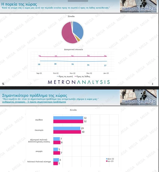 Η έρευνα περιλάμβανε ερωτήσεις για την πορεία της χώρας και για τα προβλήματα που απασχολούν τους Ελληνες.