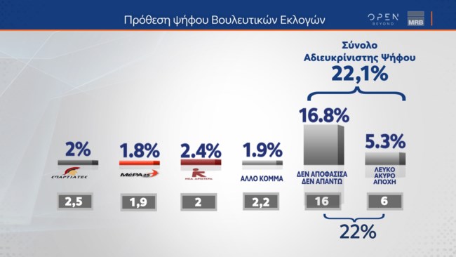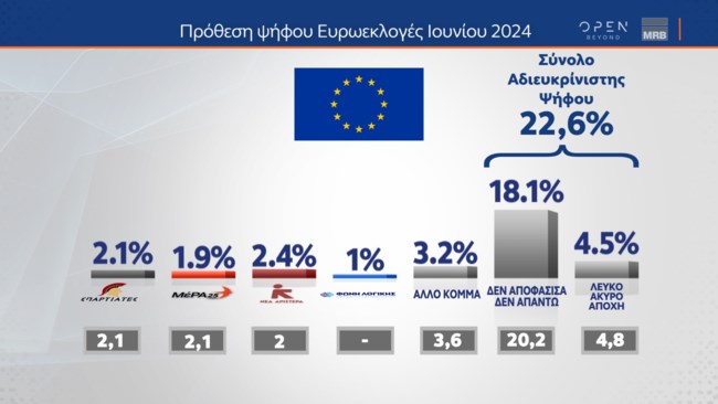 Στην πρόθεση ψήφου για τις ευρωεκλογές, τα ποσοστά καθορίζονται ως εξης: