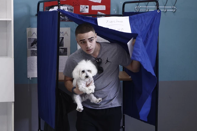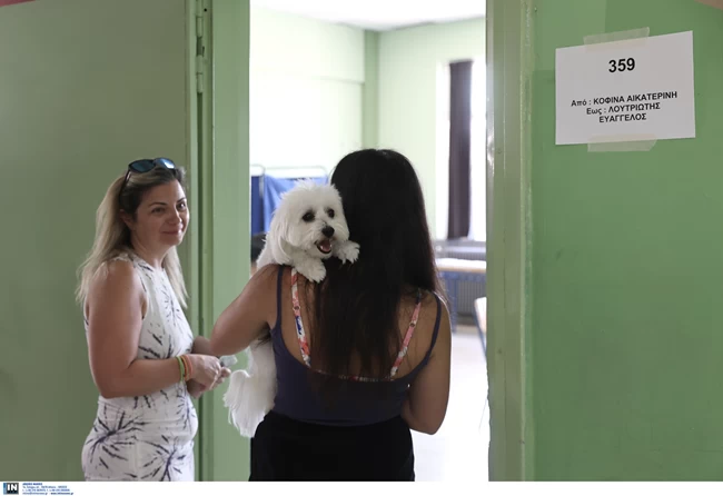 Αγκαλιά με μωρά και κατοικίδια πήγαν να ψηφίσουν αρκετοί πολίτες στις εκλογές της 25ης Ιουνίου.