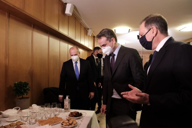 Η πολιτική ηγεσία του υπουργείου υποδέχτηκε τον πρωθυπουργό με ελληνικά παραδοσιακά εδέσματα.