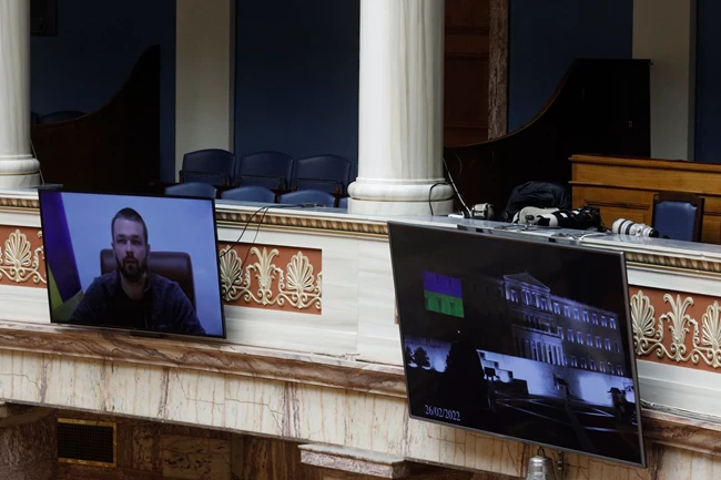 Ο πρόεδρος της Βουλής των Ελλήνων, Κωνσταντίνος Τασούλας, κατά την έναρξη της ειδικής συνεδρίασης της Ολομέλειας και προσφωνώντας τον Ουκρανό Πρόεδρο Β. Ζελένσκι τόνισε "πως με ιδιαίτερη τιμή και αισθήματα αλληλεγγύης σας υποδεχόμαστε στην Ολομέλεια της Βουλής. Η ιστορική συνεδρίαση είναι αφιερωμένη στον αγωνιζόμενο και αμυνόμενοι ηρωικό λαό της Ουκρανίας απέναντι στην βάρβαρη εισβολή που, επί 43 ημέρες, γίνεται όλο και πιο απάνθρωπη. Η Ελλάδα καταδίκασε με τον πιο έντονο τρόπο την εισβολή". Επισήμανε τη βοήθεια της χώρας μας προς την Ουκρανία, υπογραμμίζοντας ότι "μας συνδέουν μοναδικοί ιστορικοί δεσμοί" και αναφέρθηκε στην μαρτυρική Μαριούπολη.