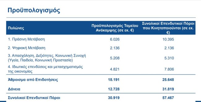 1. Τα 25,648 δισ. ευρώ θα είναι επιδοτήσεις και τα 31,819 δισ. ευρώ δάνεια: σύνολο επενδυτικών πόρων: 57,467 δισ. ευρώ