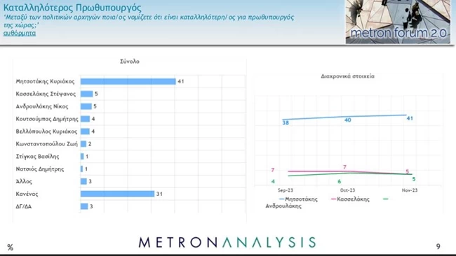 Αντιθέτως, ο Στέφανος Κασσελάκης έχει μόνο 31% θετικές γνώμες, με τις αρνητικές να φτάνουν το 54%.