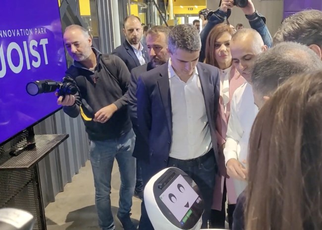 Μαζί με το ρομπότ JOY, ο Κυριάκος Μητσοτάκης κατευθύνθηκε προς το Co-working Space, τον κοινόχρηστο χώρο εργασίας και συνεργασίας του Πάρκου Καινοτομίας και το κεντρικό αμφιθέατρο του "JOIST".