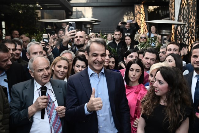 Μεγάλη προεκλογική συγκέντρωση πραγματοποίησε ο Κυριάκος Μητσοτάκης το απόγευμα της Τετάρτης, σε γνωστή καφετέρια στη Γλυφάδα.
