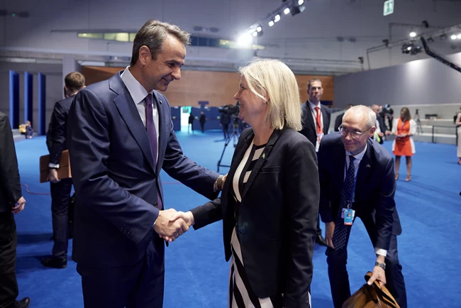 Συνάντηση είχε ο Πρωθυπουργός και με την Σουηδή ομόλογο του, Μαγκνταλένα Άντερσον, στην οποία εξέφρασε την πλήρη στήριξή του για την ένταξη της Σουηδίας και της Φινλανδίας στη Συμμαχία, δηλώνοντας την ικανοποίησή του για τις πρόσφατες εξελίξεις.