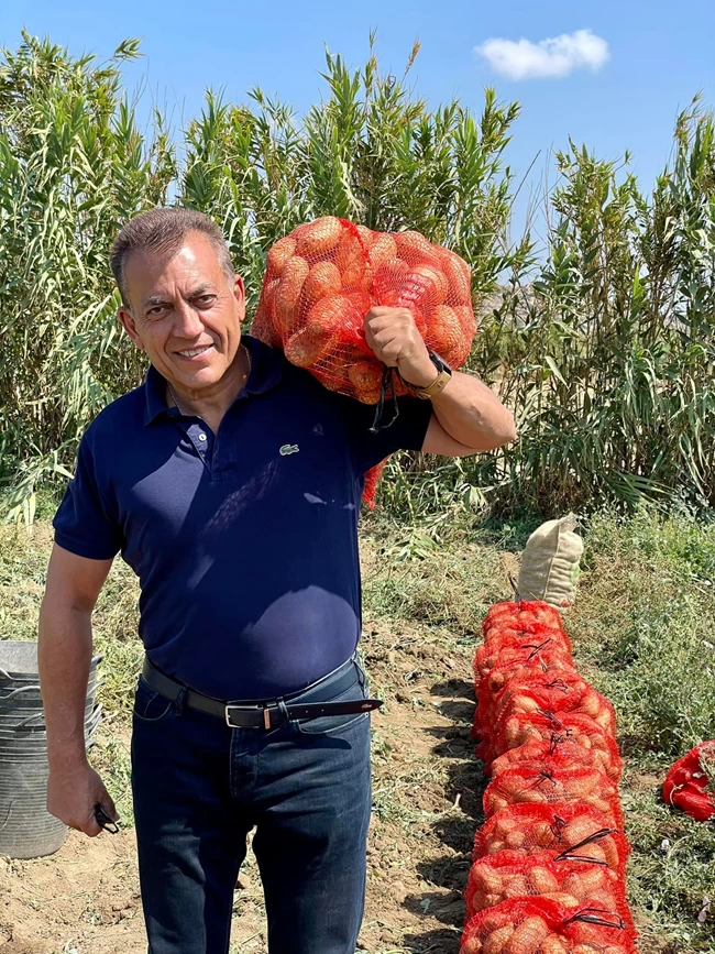 Ο πρώην υπουργός Εργασίας ανάρτησε μία φωτογραφία μαζί με έναν παραγωγό στα χωράφια του, όπου πήρε ένα σακί με πατάτες στους ώμους και πόζαρε χαμογελαστός και μαυρισμένος.