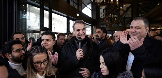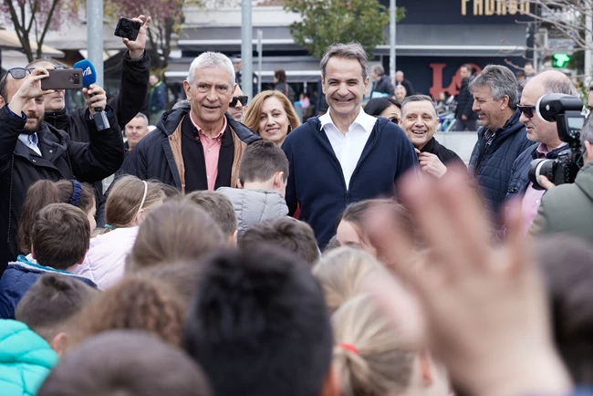 Ο κύριος Μητσοτάκης περπάτησε στην κεντρική πλατεία και συνομίλησε με πολίτες.