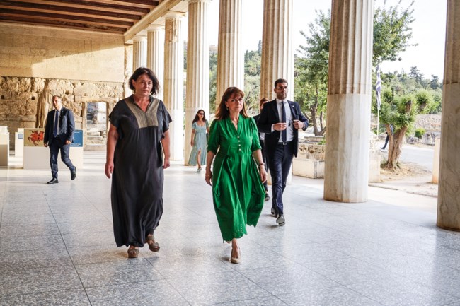 H Πρόεδρος της Δημοκρατίας Κατερίνα Σακελλαροπούλου παρέστη και απηύθυνε χαιρετισμό στη συζήτηση που διοργανώθηκε στην Αρχαία Αγορά από τις Πανεπιστημιακές Εκδόσεις Κρήτης, με αφορμή τη νέα έκδοση του βιβλίου του Σταύρου Τσακυράκη "Η ελευθερία του λόγου στις ΗΠΑ".