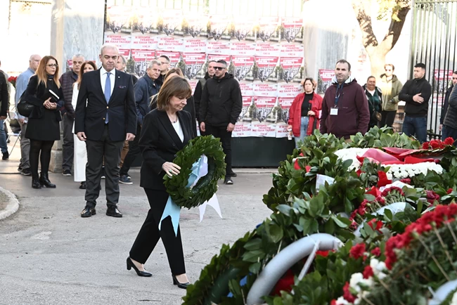 Η Πρόεδρος της Δημοκρατίας, Κατερίνα Σακελλαροπούλου κατέθεσε σήμερα το λίγο πριν τις 9 το πρωί στεφάνι στο Πολυτεχνείο, στο πλαίσιο των εκδηλώσεων για την 50ή επέτειο της 17ης Νοεμβρίου.