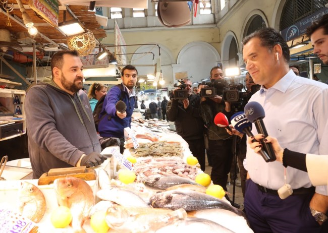 Επίσκεψη στη Βαρβάκειο, την Κεντρική Ιχθυαγορά των Αθηνών, πραγματοποίησε σήμερα ο υπουργός Ανάπτυξης και Επενδύσεων, 'Αδωνις Γεωργιάδης, συνοδευόμενος από τον πρόεδρο του Σωματείου Ιχθυοπωλών Αθηνών της Βαρβακείου, Βασίλη Σίμο, μετά τις χθεσινές ανακοινώσεις για την τιμή του μπακαλιάρου και το "Καλάθι της Σαρακοστής".