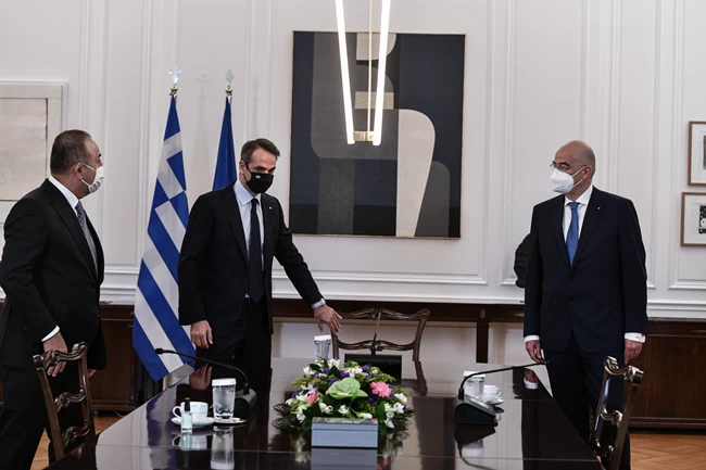 Σύμφωνα με κυβερνητικές πηγές, η συνάντηση Μητσοτάκη - Τσαβούσογλου έγινε σε πολύ καλό κλίμα και διαπιστώθηκε αμοιβαία αντίληψη για την προώθηση θετικής ατζέντας.