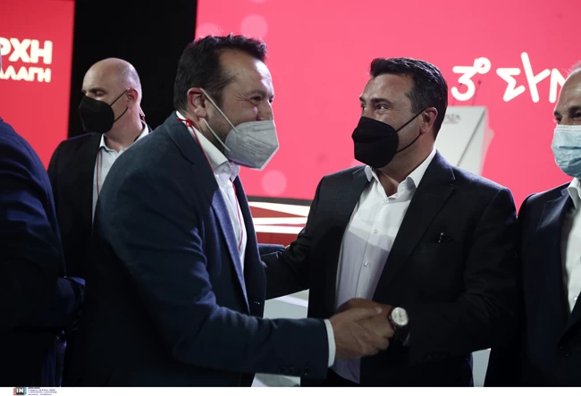 Θερμό τετ-α-τετ με τον Ζόραν Ζάεφ είχε και ο πρόεδρος του ΣΥΡΙΖΑ, Αλέξης Τσίπρας, όταν έφτασε στον χώρο του συνεδρίου. Μάλιστα, κατά την ομιλία του, ο κ. Τσίπρας ανέφερε ότι "ο Ζόραν Ζάεφ και ο Νίκος Κοτζιάς έκαναν το πατριωτικό τους καθήκον στη Συμφωνία των Πρεσπών".