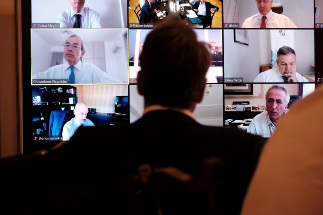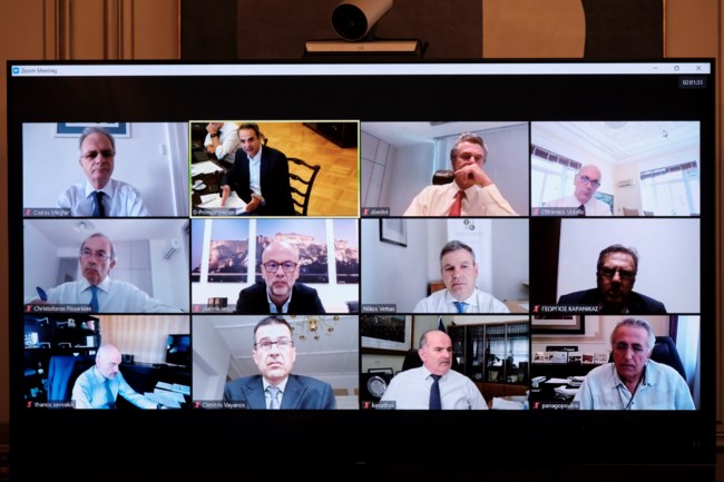Από την "Επιτροπή Πισσαρίδη" στην τηλεδιάσκεψη έλαβαν μέρος οι κ.κ.: Χριστόφορος Πισσαρίδης, Δημήτρης Βαγιανός, Νίκος Βέττας και Κώστας Μεγήρ.