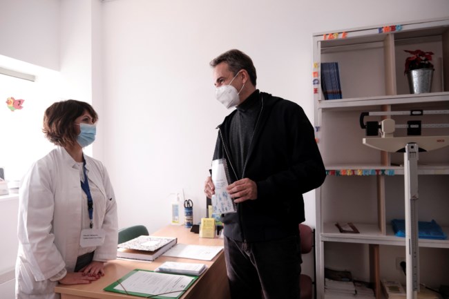 Μετά την επίσκεψή του στο νοσοκομείο ο πρωθυπουργός επισκέφθηκε και το Κέντρο Υγείας της πόλης, όπου θα συστεγαστούν τρία από τα 1.018 εμβολιαστικά κέντρα κατά του κορονοϊού. Κάθε ένα από τα τρία θα διαθέτει δύο αίθουσες εμβολιασμού και θα λειτουργεί με δύο βάρδιες.