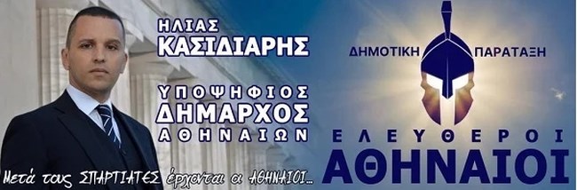 " Ο Ηλίας Κασιδιάρης θα είναι υποψήφιος δήμαρχος Αθηναίων στις αυτοδιοικητικές εκλογές του Οκτωβρίου και θα διεκδικήσει την δημαρχία με τον συνδυασμό ΕΛΕΥΘΕΡΟΙ ΑΘΗΝΑΙΟΙ. Στόχος του να περάσει στο δεύτερο γύρο και στη συνέχεια να αναλάβει την διοίκηση του δήμου.