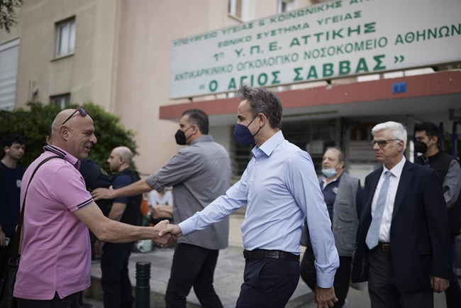 Ο πρόεδρος της Νέας Δημοκρατίας Κυριάκος Μητσοτάκης επισκέφθηκε το πρωί το Γενικό Αντικαρκινικό - Ογκολογικό Νοσοκομείο Αθηνών "Άγιος Σάββας".