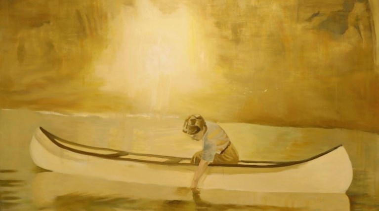 Παρομοίως, η Κάλμπαρη ανασύρει από το σκοτάδι -από τα βάθη της μνήμης- κάτι αδιευκρίνιστο, δυσδιάκριτο, ασαφές. Στην προσέγγιση της Seghers βρίσκει μια απρόσμενη σύμμαχο που τη βοηθά να κατανοήσει τη δουλειά της. Το θάμπωμα της μνήμης, αυτή η μόνιμη ομίχλη μπροστά από τα μάτια της αφηγήτριας μιας μονοήμερης εκδρομής με ποταμόπλοιο στο Ρήνο, αντανακλάται και στις ατμοσφαιρικές εικόνες που ζωγραφίζει. "Αυτό που προσπαθώ να κάνω δεν είναι αναπαράσταση. Είναι η αποτύπωση της ενθύμησης ενός συναισθήματος. Γι’ αυτό και η χρωματική γκάμα είναι περιορισμένη. Γιατί αν προσέθετα επιπλέον χρώματα, το έργο θα γινόταν πιο ρεαλιστικό" αποσαφηνίζει η καλλιτέχνις. Ενώ τώρα η εικόνα είναι σαν θολή ανάμνηση, σαν ξεθωριασμένη φωτογραφία. "Σαν να έχει πέσει φως στα μάτια σου και βλέπεις το έργο ξασπρισμένο. Και είναι σαν να υπάρχει μια τομή στον χρόνο, ένα πάγωμα, όπου εκείνη την ώρα κάτι συνειδητοποιείς" προσθέτει.