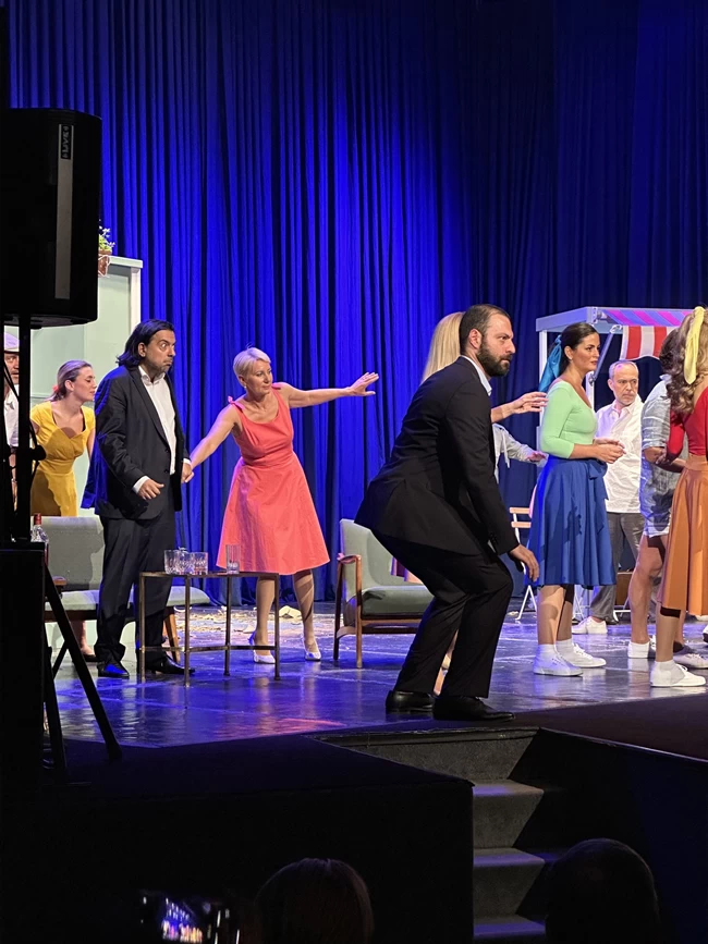 Μάλιστα ο Κώστας Καραμανλής δέχτηκε πολλά συγχαρητήρια από τους παρευρισκόμενους για τις θεατρικές ικανότητες της συζύγου του. Δίπλα του ήταν ο πρώην πρόεδρος της Δημοκρατίας Προκόπης Παυλόπουλος, ενώ λίγες θέσεις πιο πέρα τη μητέρα του χειροκροτούσε ο γιος της, Αλέξανδρος Καραμανλής.