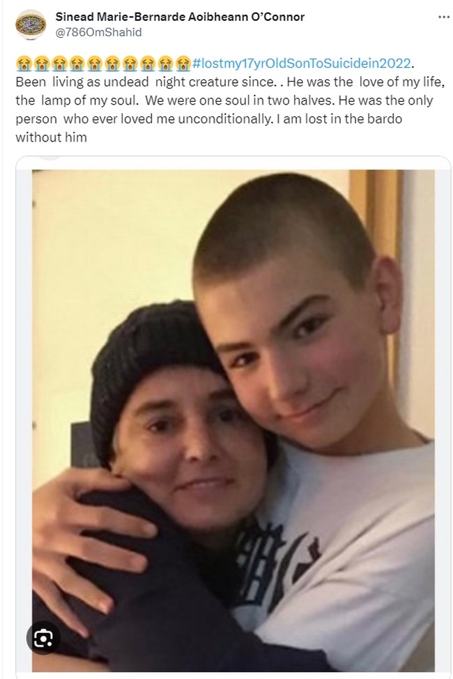 Από τον Ιανουάριο του 2022, οπότε και αυτοκτόνησε ο γιος της και μετά, η Sinead O’ Connor είχε χαθεί. Είχε κλειστεί εντελώς στον κόσμο της. Αυτό αποτυπώνεται καθαρά στα τελευταία tweets της τραγουδίστριας.