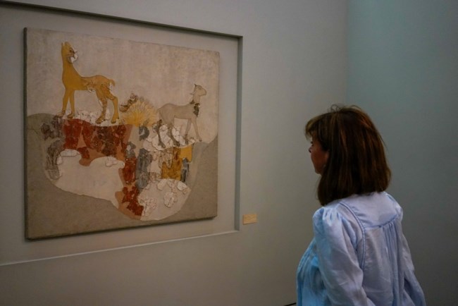 Στη συνέχεια, η κυρία Σακελλαρόπουλου επισκέφθηκε το Μουσείο Προϊστορικής Θήρας και ξεναγήθηκε στην έκθεση "Θηραϊκές τοιχογραφίες-Ο θησαυρός του Προϊστορικού Αιγαίου".